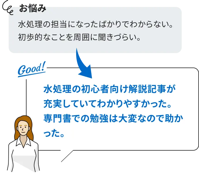 水処理における各分野の専門家がお客様の疑問や課題に、丁寧にお答えします。