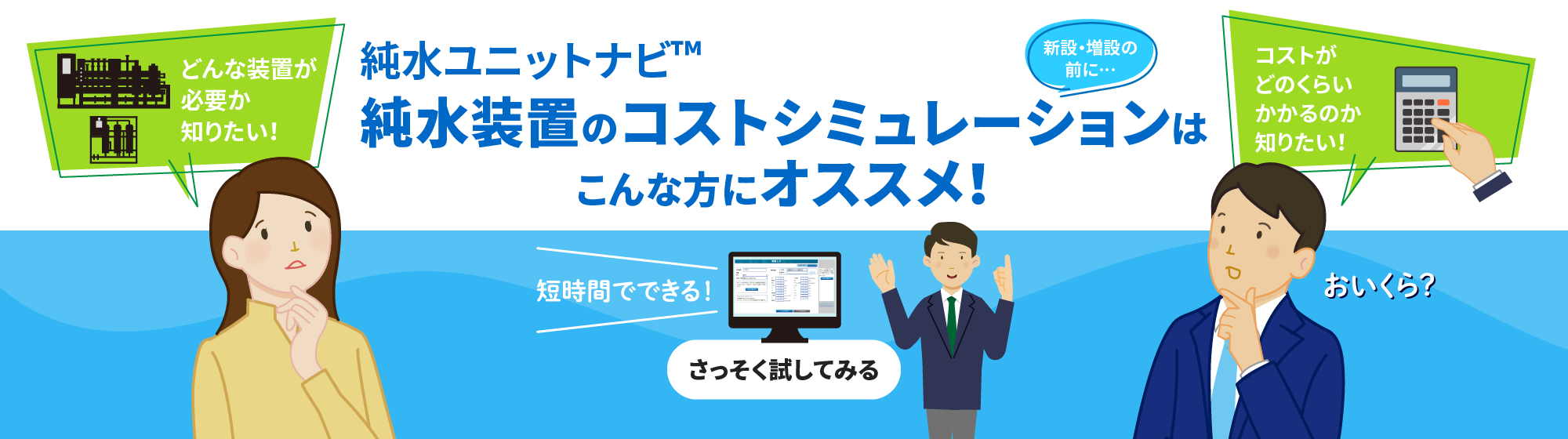 「純水ユニットナビ」は、水処理装置の導入をご検討されているお客様向けのページです。